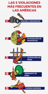 amenazas contra los profesionales del periodismo figuran entre las cinco violaciones